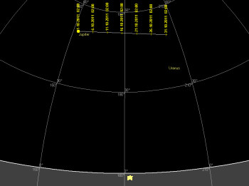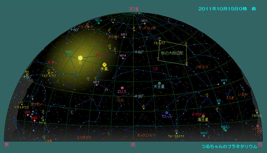 13日20時 木星が月に接近(東、高度10度、間隔3.9度)**必見** 13日 土星が合 29日 木星が衝