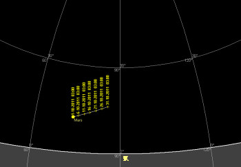 火星 出が次第に早くなる火星は、夜半後の東の空にその姿を見つけることが出来ます。光度も1.1等迄明るくなります。