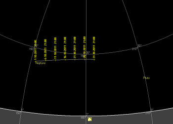 冥王星 冥王星は没が早くなり、日没後の僅かな時間のみ西の空で観望可能です。暗い星なので、望遠鏡が必要です。