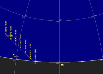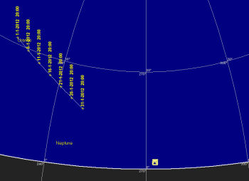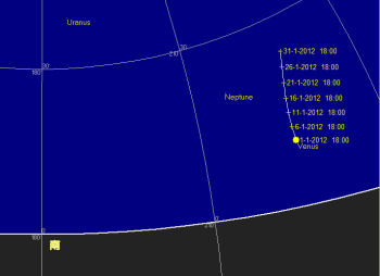 海王星 海王星の没は更に早くなり、夜半前ならば西の空で観望出来ます。大変くらい星なので、観望には望遠鏡が必要です。