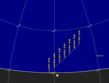 又この時期は夜光雲の季節でも有ります。夜光雲はオーロラの様にアレート情報が有りませんので、毎日注意して夜空を観望するか、独流星研究会大気光学部門のBBSをこまめにチェックして下さい。このBBSは情報の速さではぴか一です。
