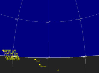 水星 今月の水星は地平線の大変近い所に有り、観望は大変難しいでしょう。