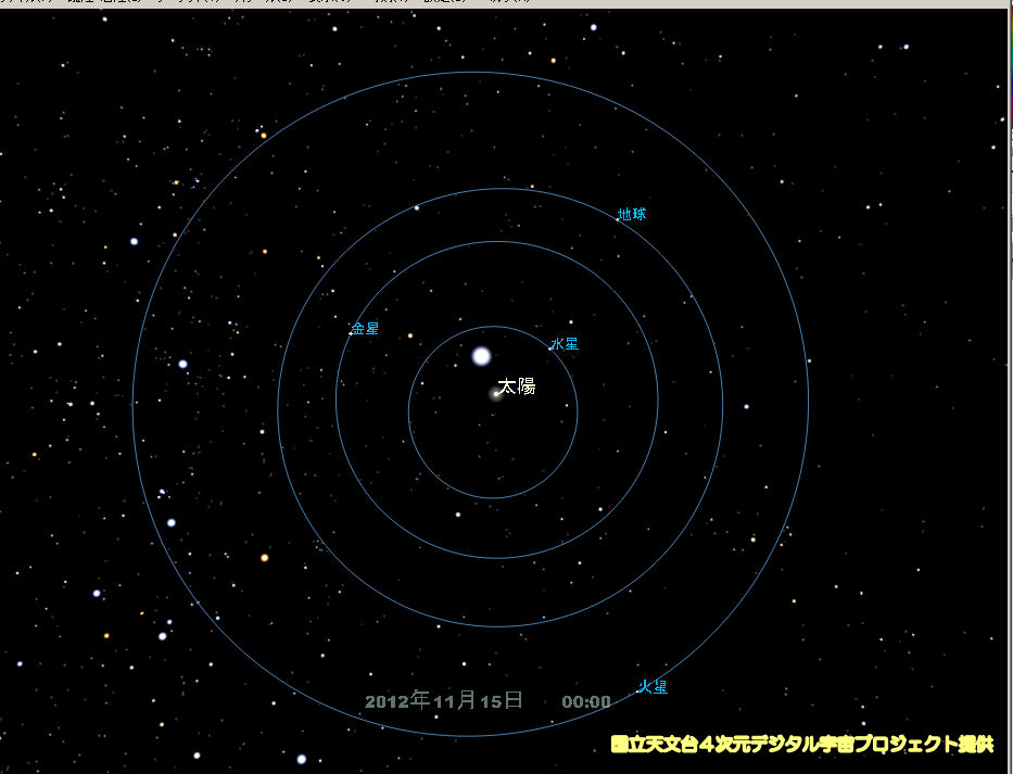 今月は木星はまだまだ一晩中観望出来るほか、火星は夕方の空でかろうじて見る事が出来ます。土星が夜明け前の東の空にその姿を現します。金星は高度を下げ、夜明け前の東の地平線近くで輝いているのが見えます。