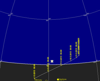 今月はパンスターズ彗星が肉眼彗星になると言われています。発見当初は-1等程の明るさになると予想されていましたが、3等迄行けばいいかもしれません。明るさの予想は大変難しいので、最初からあきらめずに観望して下さい。