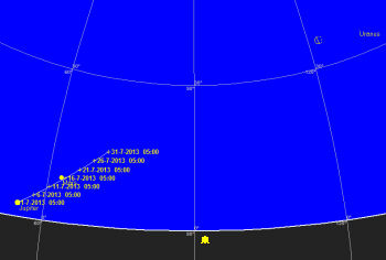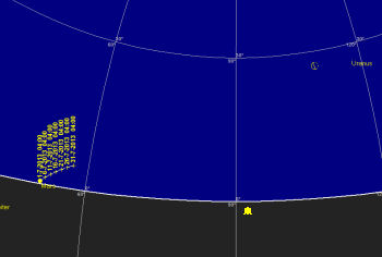 天王星 今月の天王星は出が早くなるので夜明け前の東の空で観望出来ます。暗い惑星なので見つけるのは望遠鏡が必要です。