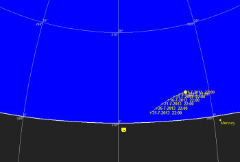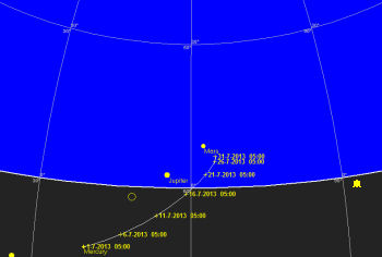 水星 今月の水星は下旬になると夜明け前の空でかろうじてその姿を見つける事が出来ます。