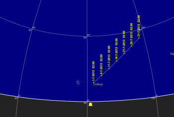 輻射点は夜中に南の空低いところにあります。今年は夜半過ぎに半月が昇り、条件は余り良く有りません。