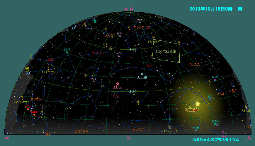 天王星 13日に衝となる天王星はほぼ一晩中観望出来ます。暗い惑星なので見つけるのは望遠鏡が必要です。