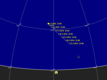 水星 今月の水星は大きく太陽から離れ、日没前の南西の空で観望出来る。光度も-1.1等迄明るくなる。