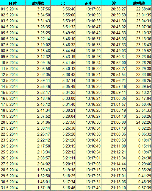 日出、日没