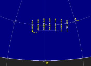 土星 先月衝となった土星は夜空で最も目立つ星。一晩中観望可能。