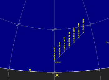 金星 今月も金星は明けの明星として東の空で観望可能。光度は-3.9等へ下がる。