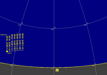 金星 金星は没が遅くなり、夕方高度を上げてくる。今月は南西の空で観望可能。光度は-3.9等。今月は水星と接近する。