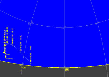 水星 先月の8日に内合になった水星は太陽から離れるが、観望出来るほど高度は上がらない。