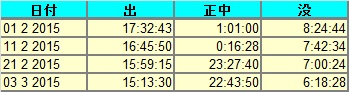 日付 時刻 1 17 金星と海王星が接近(南西、高度20度、間隔 0.8度) **必見** 3 満月 4 5 木星が 月に接近(西、高度30度、間隔 5度)**必見** 5 5 レグルスが月に接近(西、高度30度、間隔 3.8度)**必見** 6 月が遠地点を通過 6 18 木星が衝 10 0 スピカ 3.1 南 月 11 8 水星が留 12 下弦 13 1 土星が月に接近(南東、高度5度、間隔 2.1度)**必見** 16 4 冥王星が月に接近 (南東、高度5度、間隔3.0度) 17 5 水星が月に接近(南東、高度5度、間隔 3.3度) 18 23 新月 19 7 月が近地点を通過 20-21 17 金星、火星、月のランデブー(西、高度5度)**必見** 24 19 水星が西方最大離隔 25 17 上弦 25 23 アルデバランと月が接近(北西、高度10度、間隔 1.0度) **必見** 26 4 海王星が合