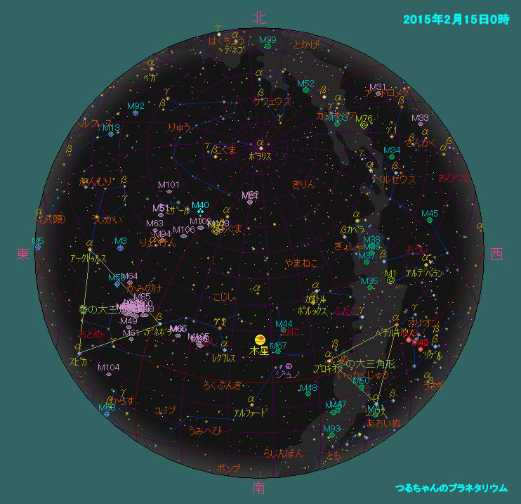 木星 今月15日に衝となる木星は一晩中観望。光度は-2.6等。