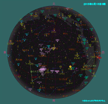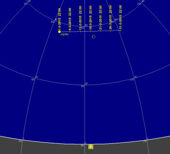 木星 今月15日に衝となる木星は一晩中観望。光度は-2.6等。