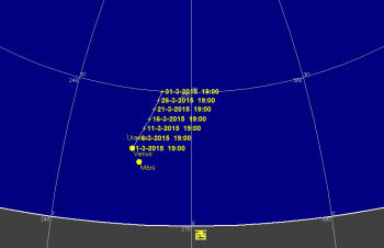 金星 金星は没が遅くなり、夕方高度を上げてくる。今月は南西の空で観望可能。