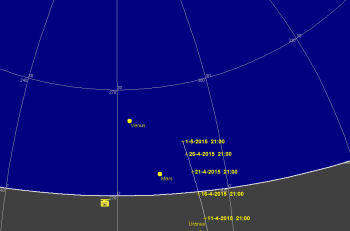 金星 金星は没が遅くなり、夕方高度を上げてくる。今月は南西の空で観望可能。光度-4.1等。