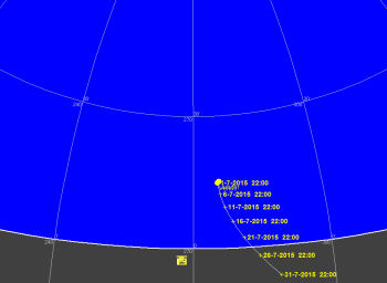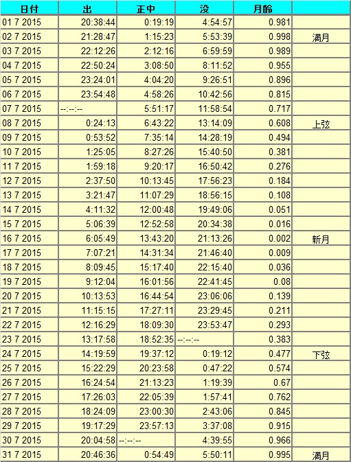 日付 時刻 1 15 金星と木星が接近(6月30日22時、西、高度10度、間隔0.4度)**必見** 2 満月 6 月が近地点を通過 6 15 冥王星が衝 6 地球が遠日点通過 8 20 下弦 9 3 天王星が月に接近(東、高度15度、間隔0.7度) 16 1 新月 18-19 木星と金星が月に接近(西、高度10度)**必見** 21 10 月が遠地点を通過 23 水星が外合 24 上弦 31 満月