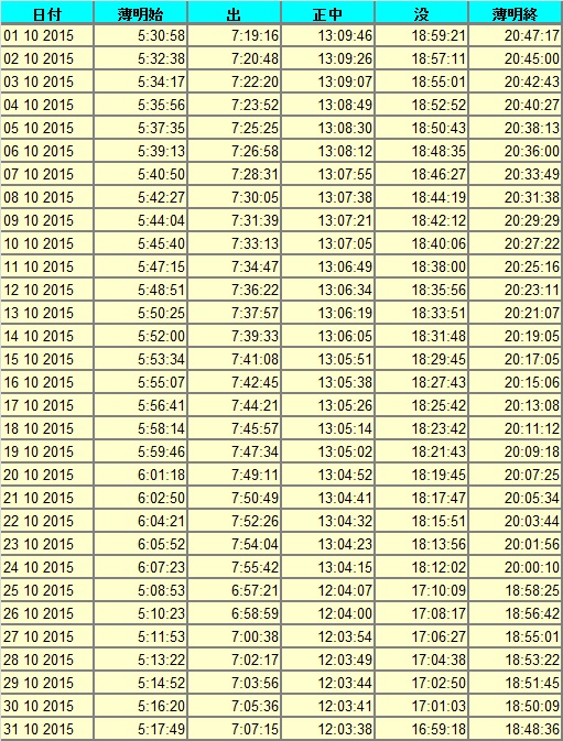 日出、日没
