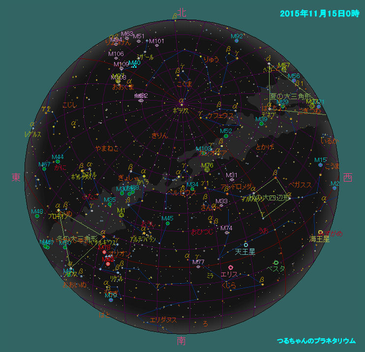 非常にマイナーが流星群だが、南北両方で一時間に15個程の流星が見られる事も有る。