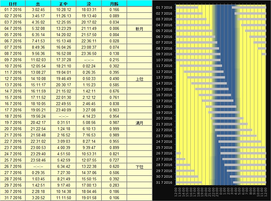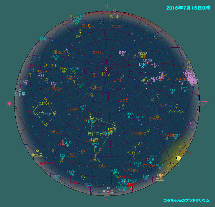 7月15日0時頃の空 現在の空 www,heavens-above.com