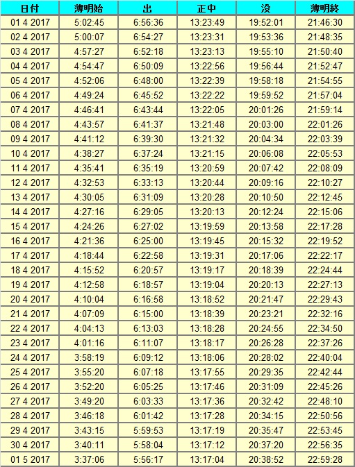 日出、日没