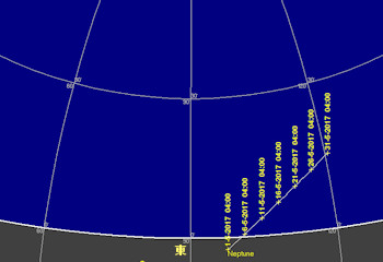 日付 時刻 イベント 8 0 木星が月に接近(南西、高度30度、間隔1.2度) 14 0 土星が月に接近(南東、高度5度、間隔2.4度) 18 水星が西方最大離隔