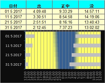 出現期間 5月3日~5月14日 極大 5月9日 出現規模 < 3個/時間