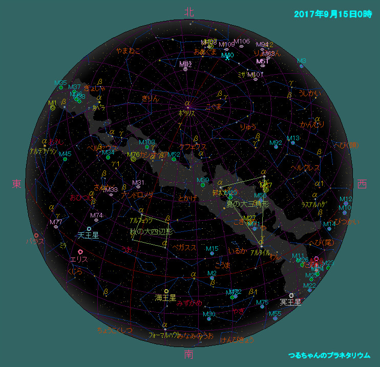 9月15日0時頃の空 現在の空 www,heavens-above.com