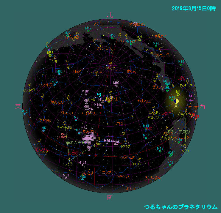 3月15日0時頃の空 現在の空 www,heavens-above.com