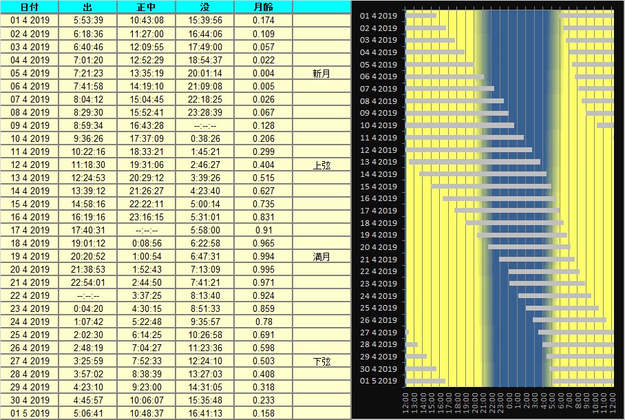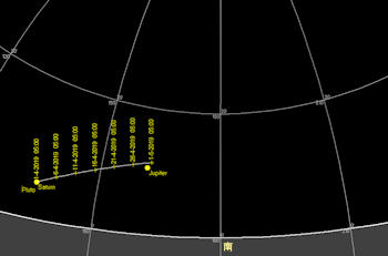 日付 時刻 方角 高度(度) イベント 2 6 東 10 金星が月に接近(間隔3.4度) 11 水星が東方最大離隔 23 4 南 20 木星が月に接近(間隔4.9度) 22 こと座流星群 が極大 25 4 南 15 土星が月に接近(5.8度) 26 3 南 15 土星が月に接近(5.8度)
