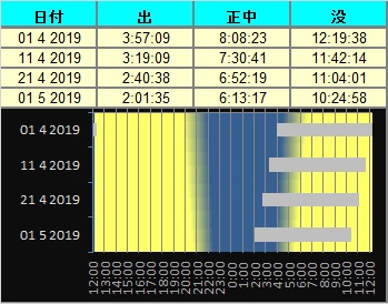 出現期間 4月19日~5月28日 極大 5月6日15時 出現規模 40個/時間