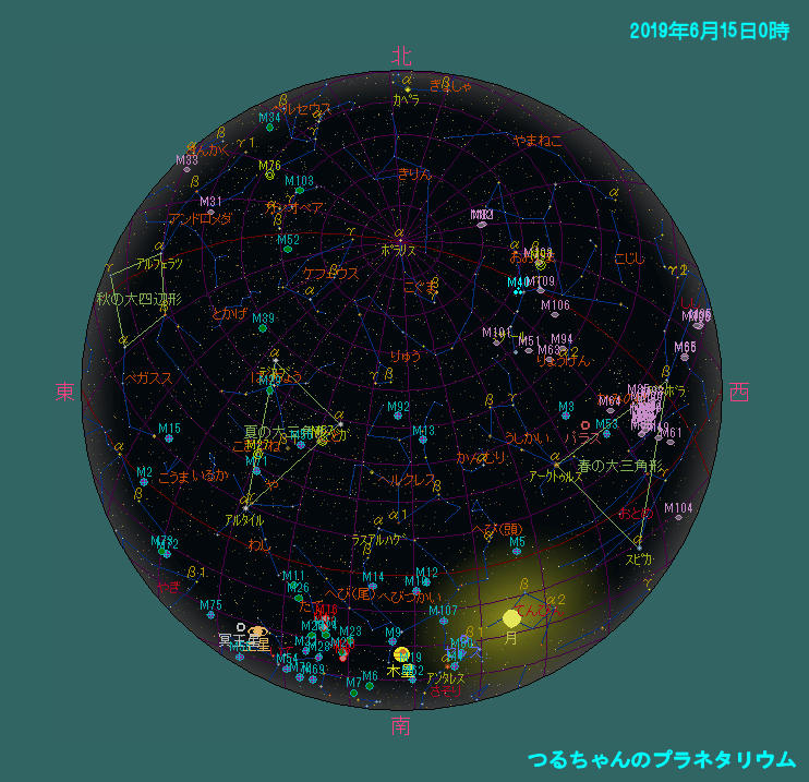 6月15日0時頃の空 現在の空 www,heavens-above.com