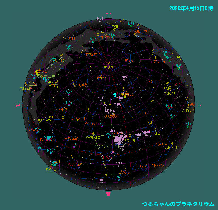 4月15日0時頃の空 現在の空 www,heavens-above.com