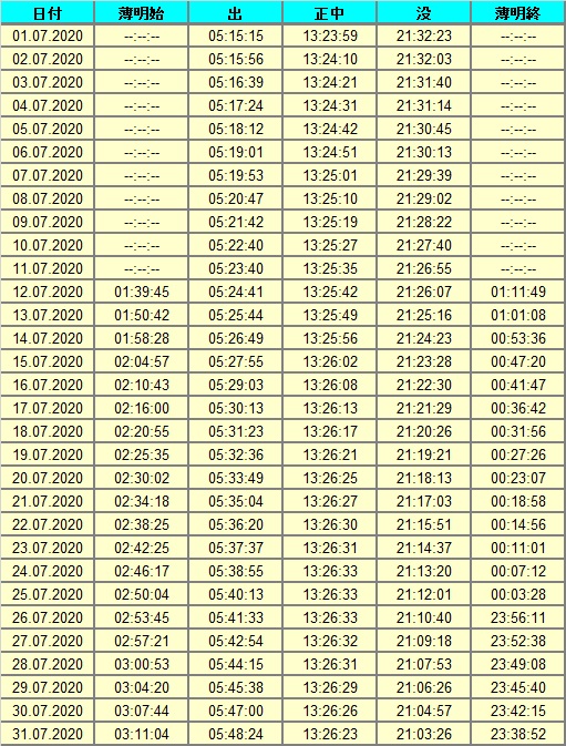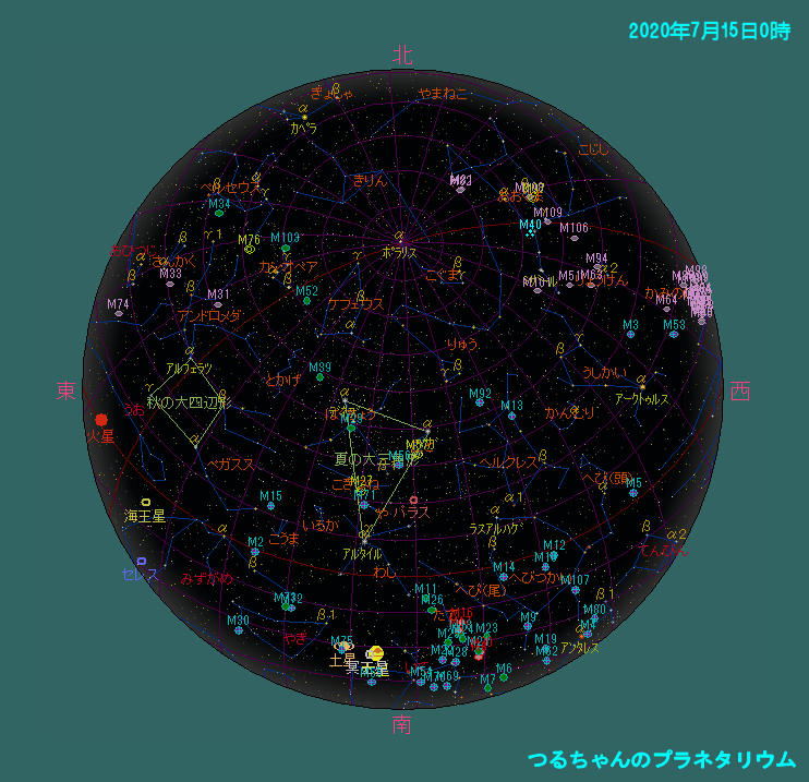 7月15日0時頃の空 現在の空 www,heavens-above.com