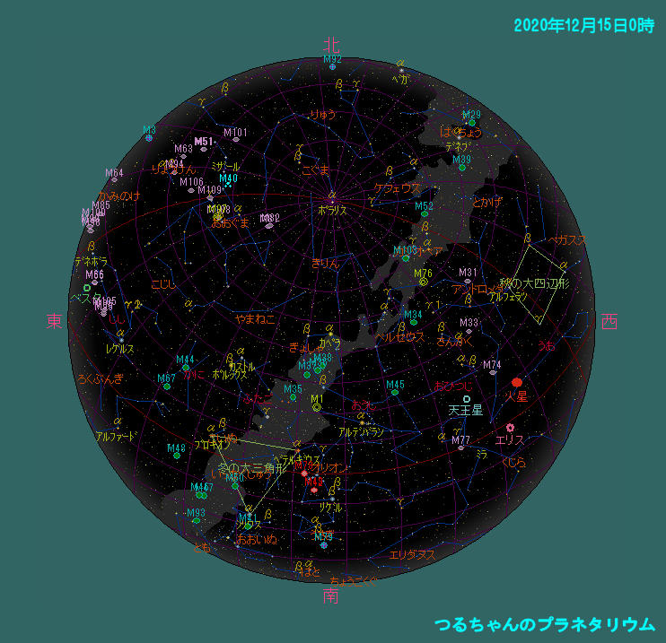 12月15日0時頃の空 現在の空 www,heavens-above.com