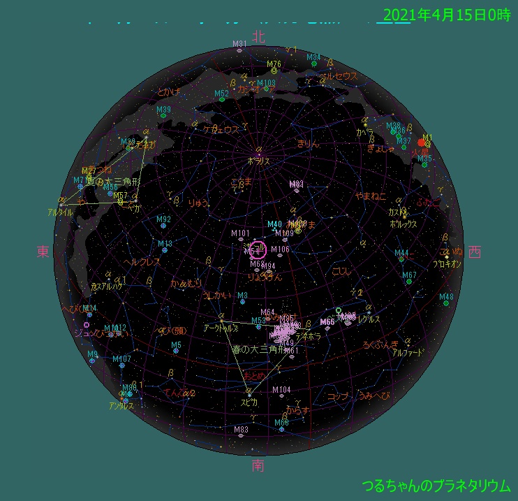 4月15日0時頃の空 現在の空 www,heavens-above.com