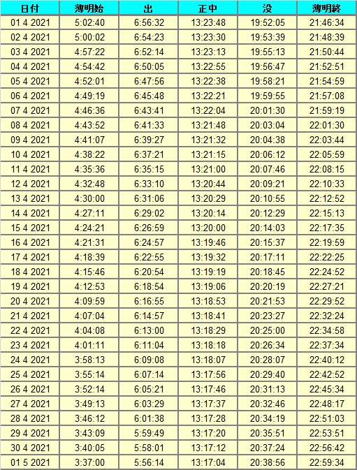 日出、日没