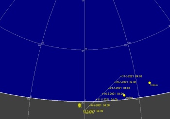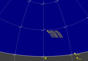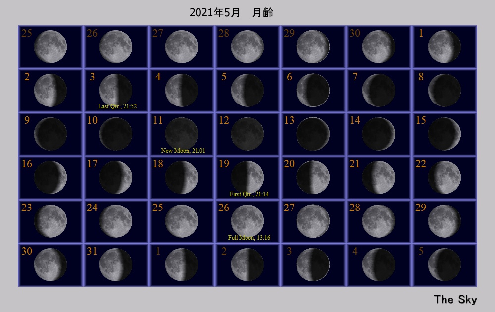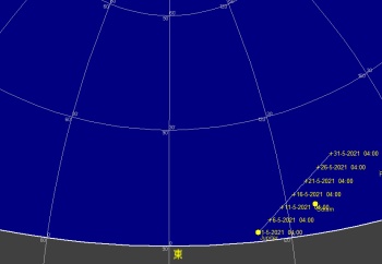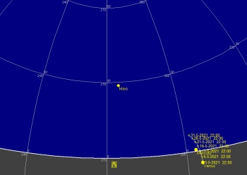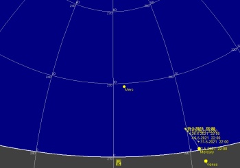 日付 時刻 方角 高度(度) イベント 4 5:00 南東 10度 木星が月に接近(間隔5.6度) 12 20:00 西 10度 金星が月に接近(間隔2.6度) 13 21:00 西 15度 水星が月に接近(間隔2.7度) 15 23:00 西 15度 火星が月に接近(間隔3.9度) 17 水星が東方最大離隔 26 皆既月食(欧州からは観望不可) 28 21:00 西 15度 金星と水星が接近(0.5度) 31 3:00 南東 15度 土星が月に接近(5度)