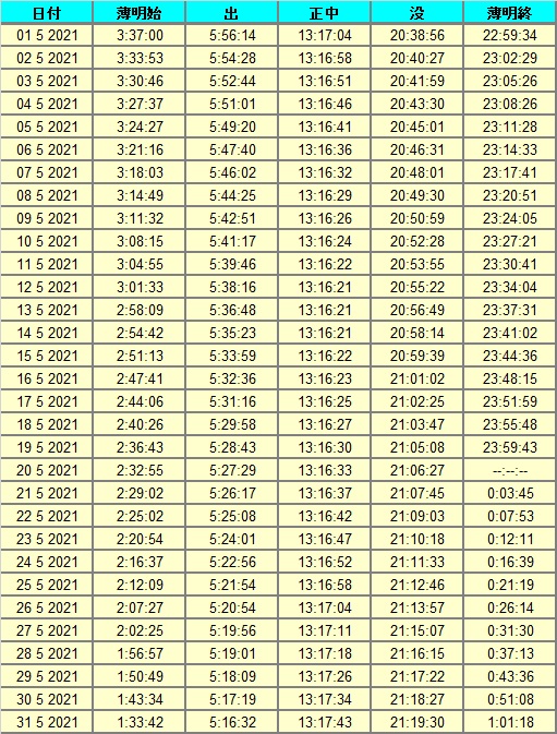 日出、日没
