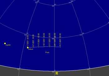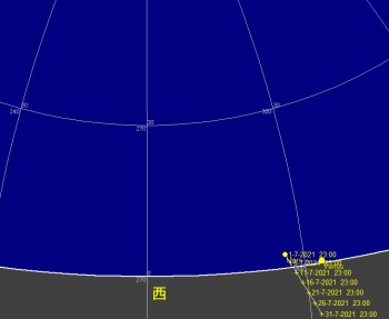 日付 時刻 方角 高度(度) イベント 4 水星が西方最大離隔 5 地球が遠日点を通過(1億5210万km) 5-20 21時 西 15 火星と金星がランデブー 8 5時 東 10 水星が月に接近(2.9度) 12 21時 西 15 金星が月に接近(4.6度) 13 21時 西 15 火星が月に接近(0.5度) 18 冥王星が衝 24 23時 南東 10 土星が月に接近(5度) 26 5時 東 10 木星が月に接近(4.8度) 28 水瓶座δ流星群が極大
