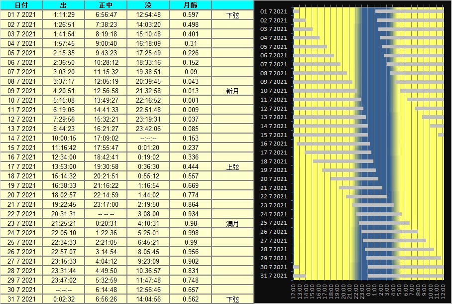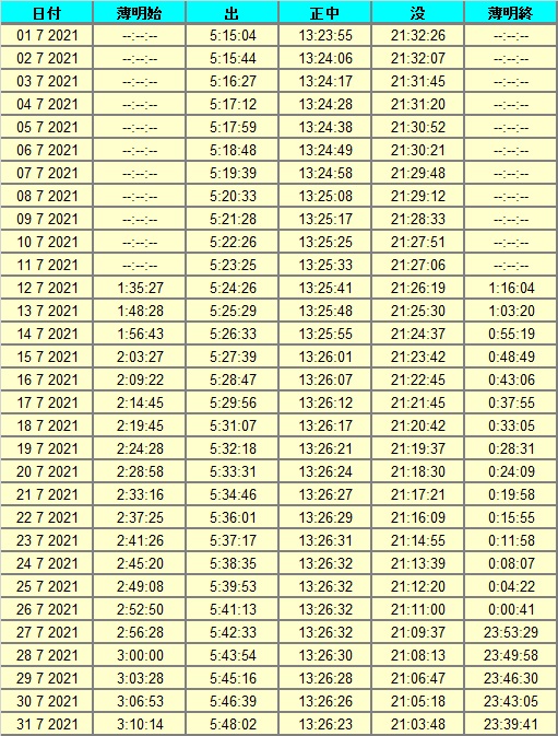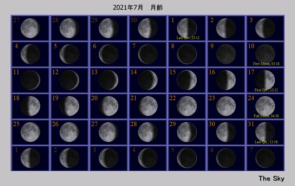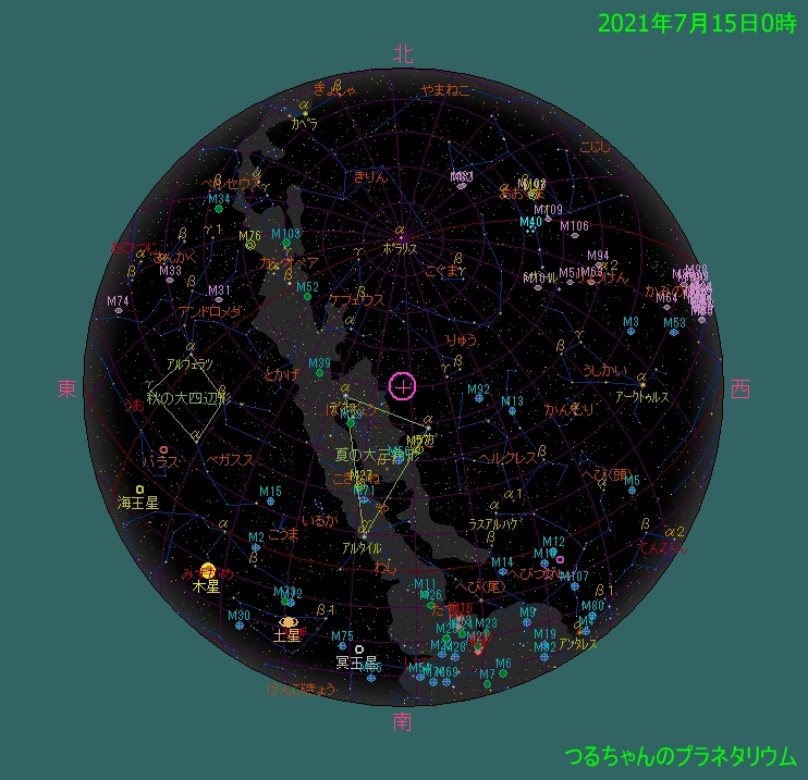 7月15日0時頃の空 現在の空 www,heavens-above.com