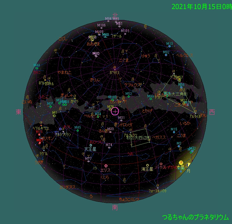 10月15日0時頃の空 現在の空 www,heavens-above.com