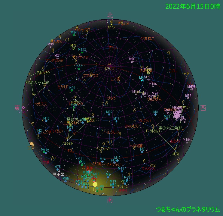 6月15日0時頃の空 現在の空 www,heavens-above.com