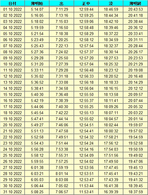 日出、日没