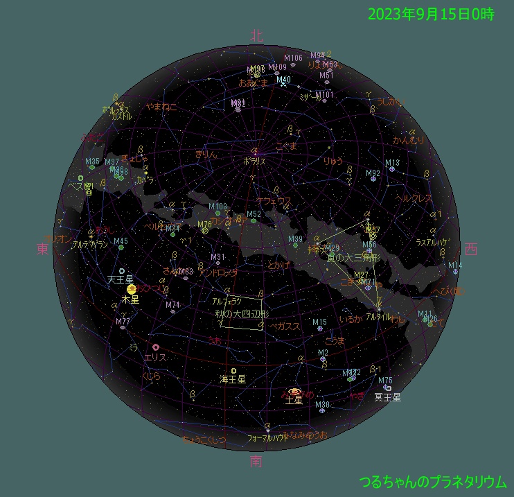 9月15日0時頃の空 現在の空 www,heavens-above.com