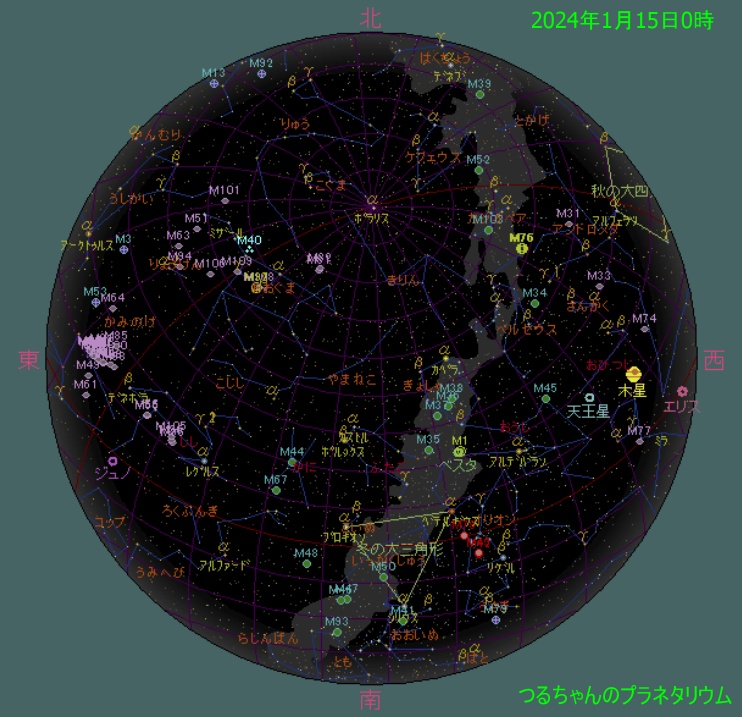 1月15日0時頃の空 現在の空 www,heavens-above.com