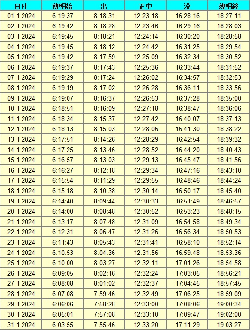 日出、日没